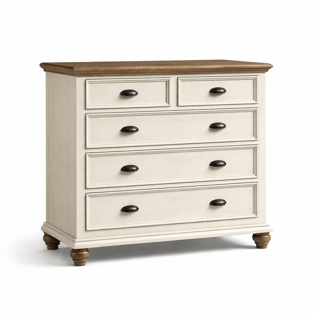 Cajonera de madera con 5 cajones blanco y marrón claro