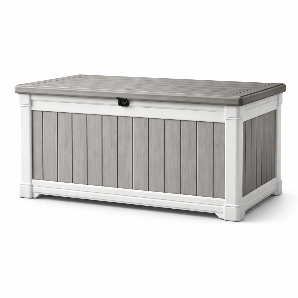 Baúl de almacenamiento de exterior de polipropileno gris